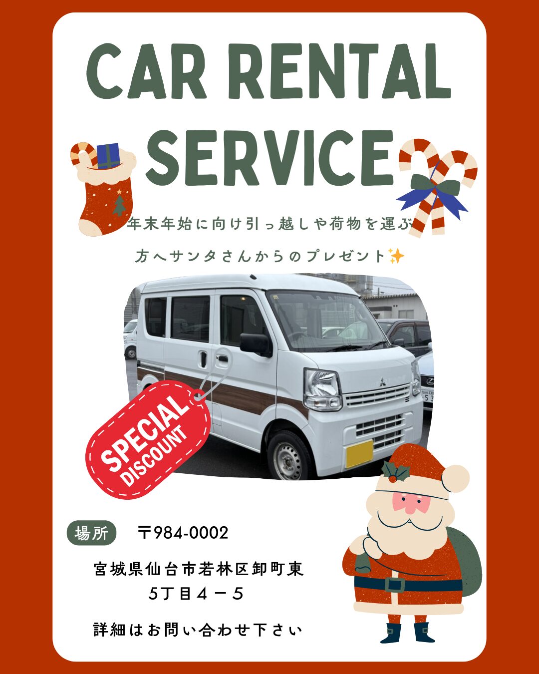 ~長期・法人利用をご検討中のお客様へ~ レンタカー貸渡に関する重要なお知らせ 平素より 仙台レンタカーサービス をご利用いただき、誠にありがとうございます。 当店では、 長期レンタカーをご検討中の法人様 損保代車としてご […]
